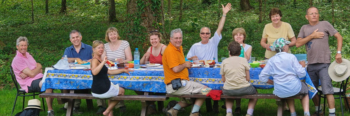 The main culinary event each day is the leisurely and lively four-course Evening Meal, in which guests and hosts participate at a single long table (pre-corona virus and – we trust – post-coronavirus). A different seating plan is proposed daily to ensure the comfort and wellbeing of each guest.